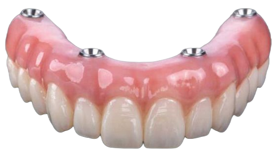 Dantura fixă pe implanturi este o soluție funcțională, stabilă și estetică. Înlocuiește complet dinții lipsă cu o lucrare fixată permanent pe implanturi, oferind senzația și funcționalitatea dinților naturali.
